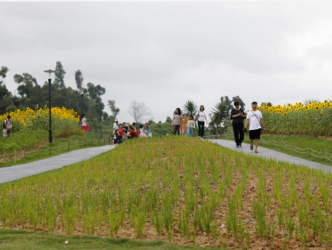 據(jù)介紹,香洲正方在公園環(huán)湖路附近開墾出一片“都市田園”,成為市民游客來(lái)公園必到打卡地。截至目前,這片“都市田園”總面積達(dá)1500平方米,包括400平方米的向日葵、600平方米的百日菊,還有番茄、旱稻、南瓜等農(nóng)作物。希望通過“都市田園”的開辟,讓小朋友們能夠近距離地接觸到大自然,了解書本里的農(nóng)作物,逐漸將其打造成園區(qū)的一個(gè)城市科普基地。