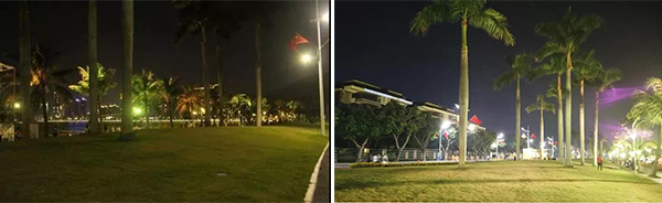 為滿足國慶當(dāng)天焰火晚會的景觀需求,增加夜景效果,“小黃人”提前對情侶南路、情侶中路沿線9個小區(qū)、30多棟樓宇進(jìn)行多次實(shí)地踏勘,結(jié)合現(xiàn)場實(shí)際,對海灣花園、情侶灣1號、龍園海灣雅苑、東方傲景峰、龍洲灣花園及財富商務(wù)大廈等6個小區(qū),共16棟樓宇實(shí)施了屋頂泛光照明工程,合計安裝射燈246套,配管及配線總長達(dá)近8000米,并于9月30日完成全部燈具的點(diǎn)亮。