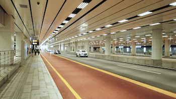 地下通道主道為雙向六車道的車輛快速通行道,兩側(cè)保留原有公交站點(diǎn),并設(shè)有港灣公交專用道。輔道劃分出租車上客區(qū)、出租車下客區(qū)、社會(huì)車輛上下客區(qū)和歧關(guān)大巴上客區(qū)四大功能區(qū)。