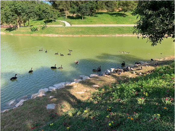 沿著四個高低差湖泊一路前行,山腰之間松林步道若隱若現,湖邊的芭蕉林、荔枝林與面積達4000平方米的波斯菊、向日葵花海相映成趣。游覽結束,到與香山湖公園二期同步開放illy香山湖咖啡中小坐,別有情調。