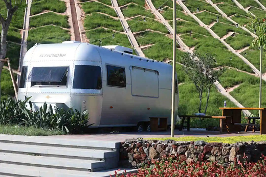從瀑布折回,沿著依山而建的青石板步道向前,就能看到香山湖·星樂度露營驛站。市民可以一邊品嘗美食,一邊體驗戶外露營文化、房車文化,了解自然科普知識。