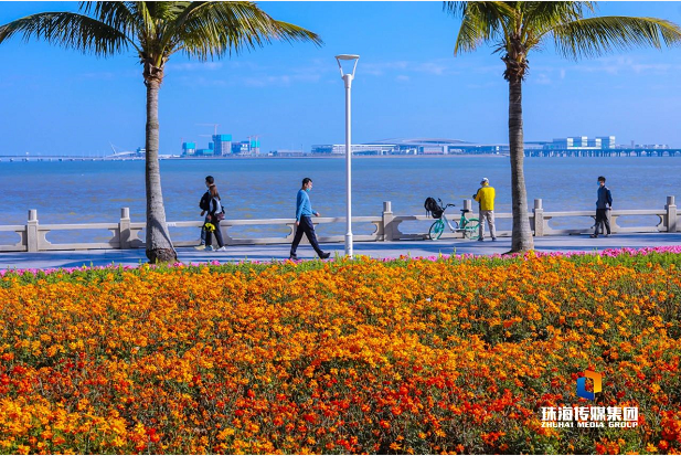 海灣園對出的花帶總面積約1600平方米海風輕拂,花枝搖擺,春光也因此顯得格外美好。