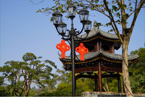 香山湖公園懸掛紅燈籠、中國(guó)結(jié)
