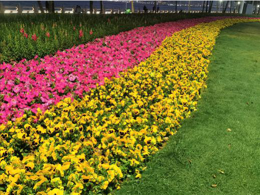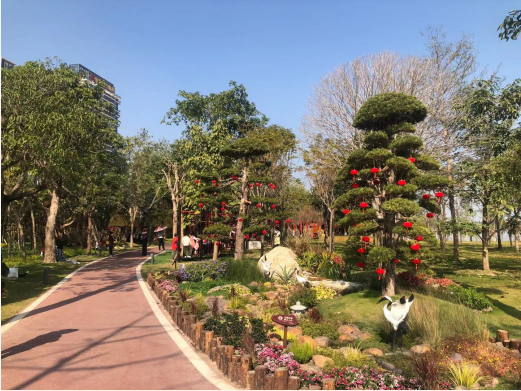 在梅華城市花園、前山濱河公園、城市客廳等,香洲正方管養(yǎng)的140多個(gè)公園處處可見(jiàn)紅紅燈籠、璀璨的流星燈、嬌艷的時(shí)花,紅色成為新春佳節(jié)的主題。