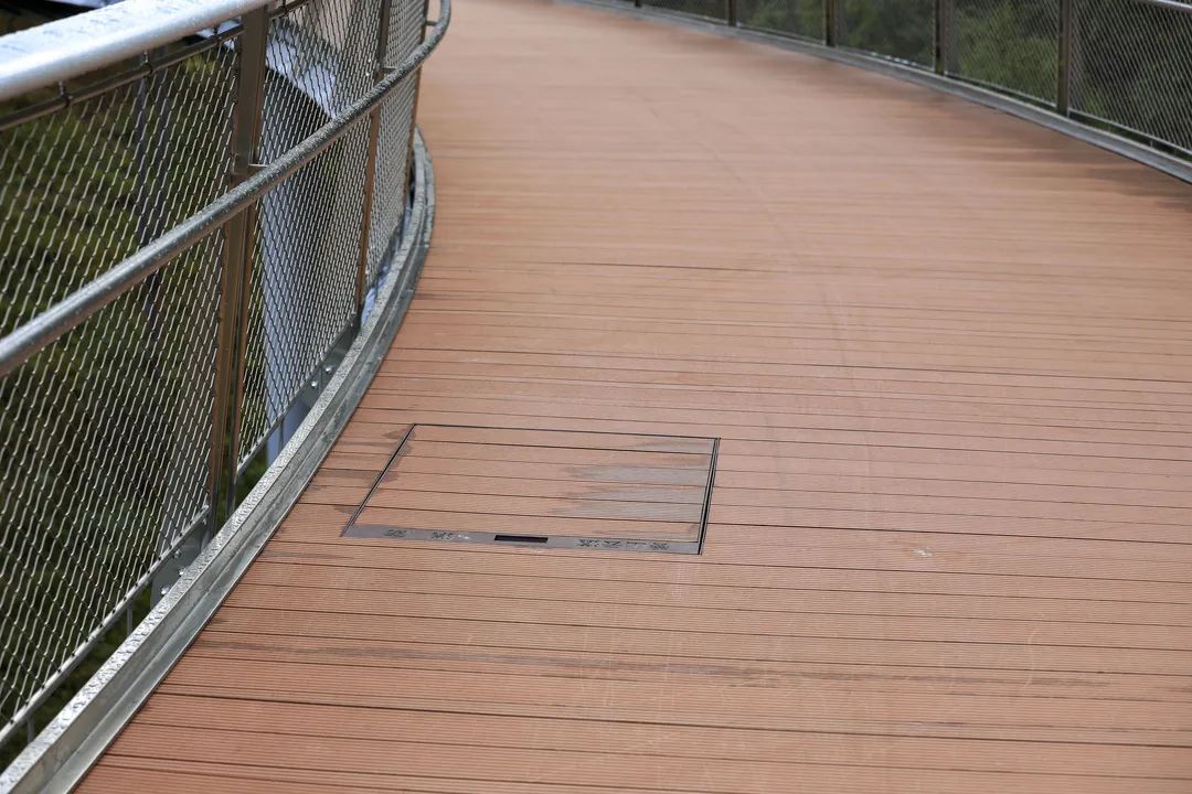 在“以人為本”的設計理念下,游覽者避免了登山拾階而上對膝蓋的損傷,踏步云道如履平地,防滑木制材料增大了步道與鞋底的摩擦力,無論是中青年,還是老人、小孩,都可以輕松登上山頂,盡享城市與自然的絕美風光。