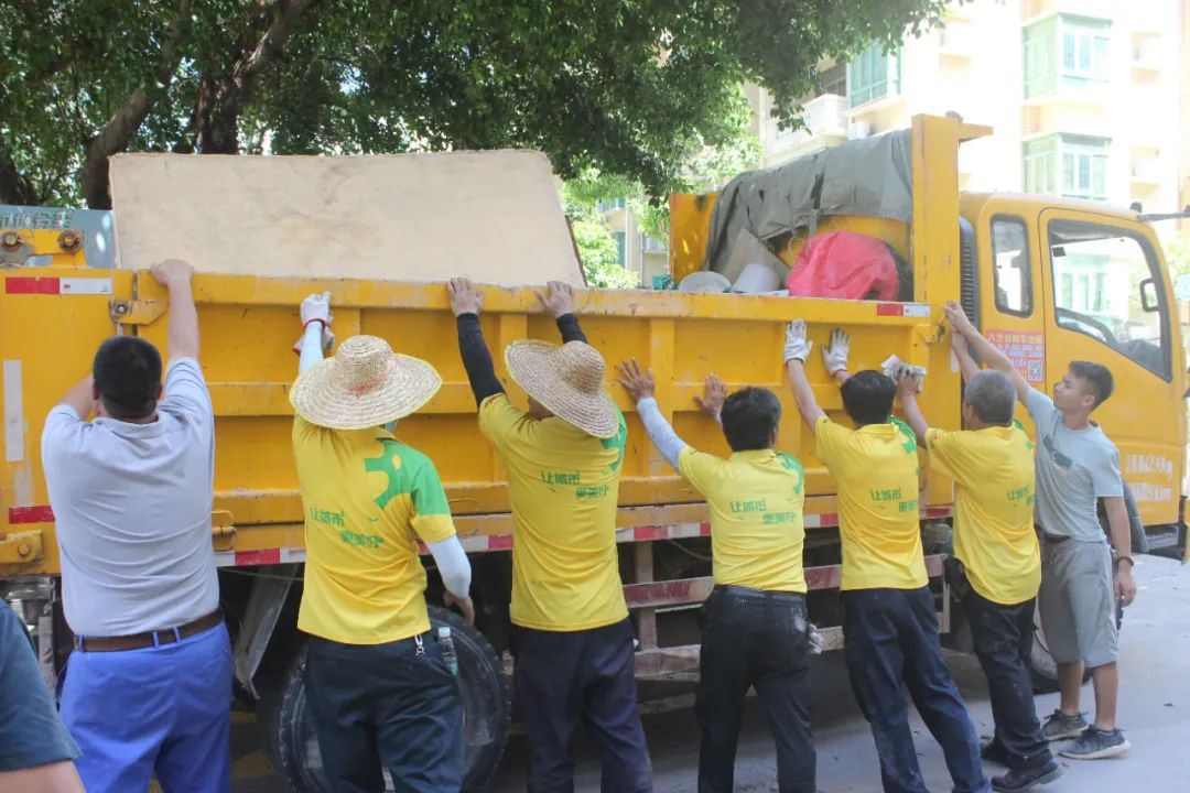 烈日高溫下,在小區(qū)廣場(chǎng)、樓頂、花園、道路旁等,處處都是黃色的身影。按照“清潔一點(diǎn)、干凈一片、整潔一方”要求,行動(dòng)隊(duì)員手持各類清潔工具,用鐵鍬鏟土、鋤頭松地、雙手清理清運(yùn)垃圾,或是精心修剪花木、種植翠蘆莉,與社區(qū)的志愿者一起營(yíng)造干凈、整潔、舒適的生活環(huán)境。