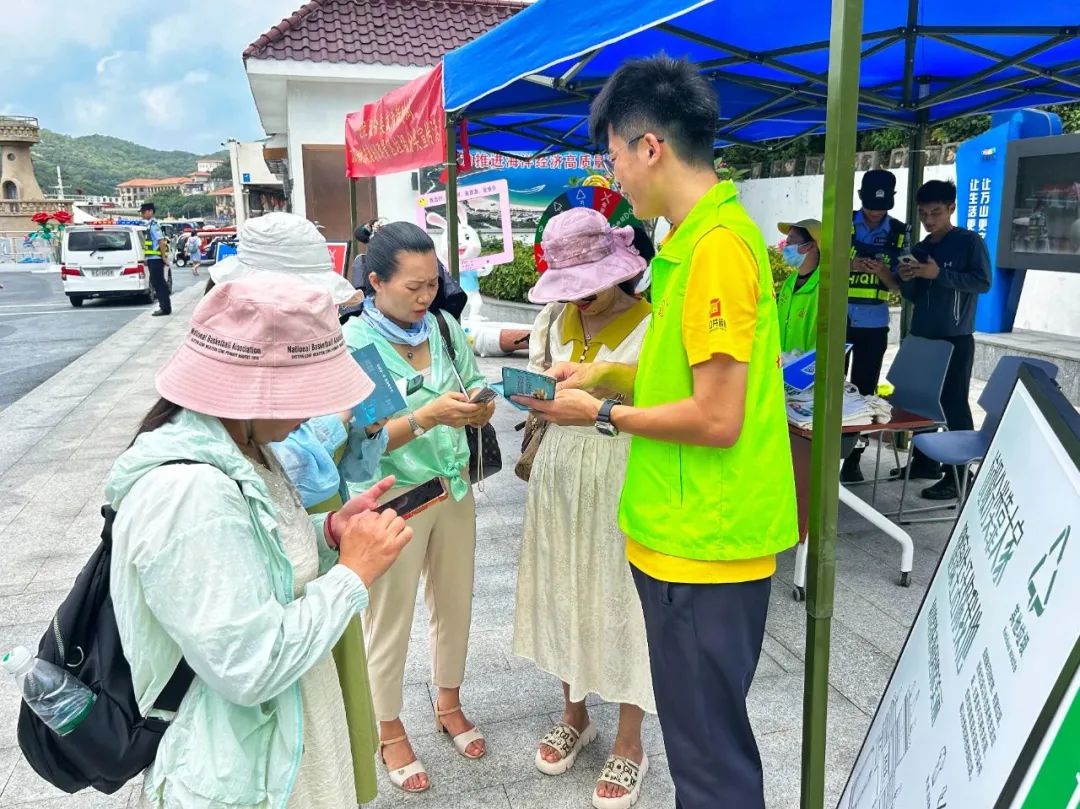 △居民、游客領(lǐng)取垃圾分類(lèi)宣傳手冊(cè)