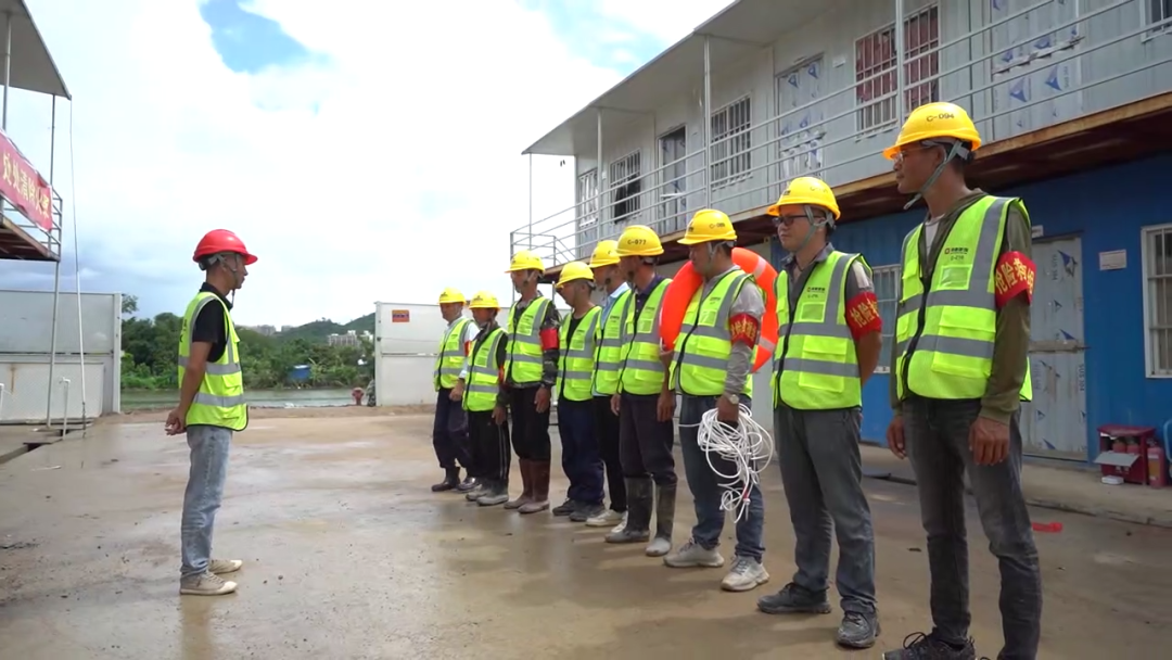 演練中,項目部防臺防汛應急預案并結(jié)合現(xiàn)場實際情況,模擬“受臺風暴雨影響,項目緊急撤離,撤離過程中工人落水”以及“受臺風暴雨影響,前山河水涌入項目部”等險情。項目部迅速啟動防汛應急救援預案,在正方集團三防應急指揮部指揮下,安排人員撤離、救治傷員、前山河河堤加固加高,迅速的完成了人員疏散及救治傷員,有效阻斷河水涌入項目。各演練小組分工明確、協(xié)同作戰(zhàn),演練流程銜接有序,演練取得圓滿成功。
