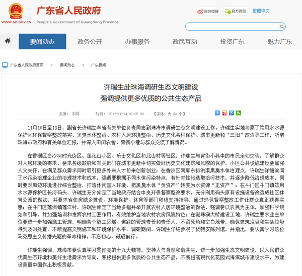 廣東省人民政府網(wǎng):許瑞生赴珠海調(diào)研生態(tài)文明建設(shè) 強調(diào)提供更多優(yōu)質(zhì)的公共生態(tài)產(chǎn)品
