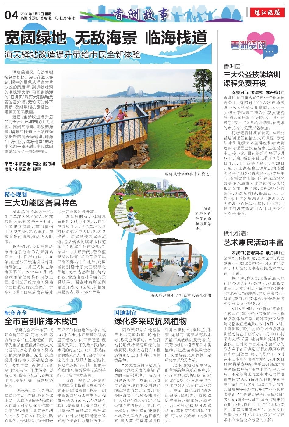珠江晚報(bào):寬闊綠地 無(wú)敵海景 臨海棧道 海天驛站改造提升帶給市民全新體驗(yàn)