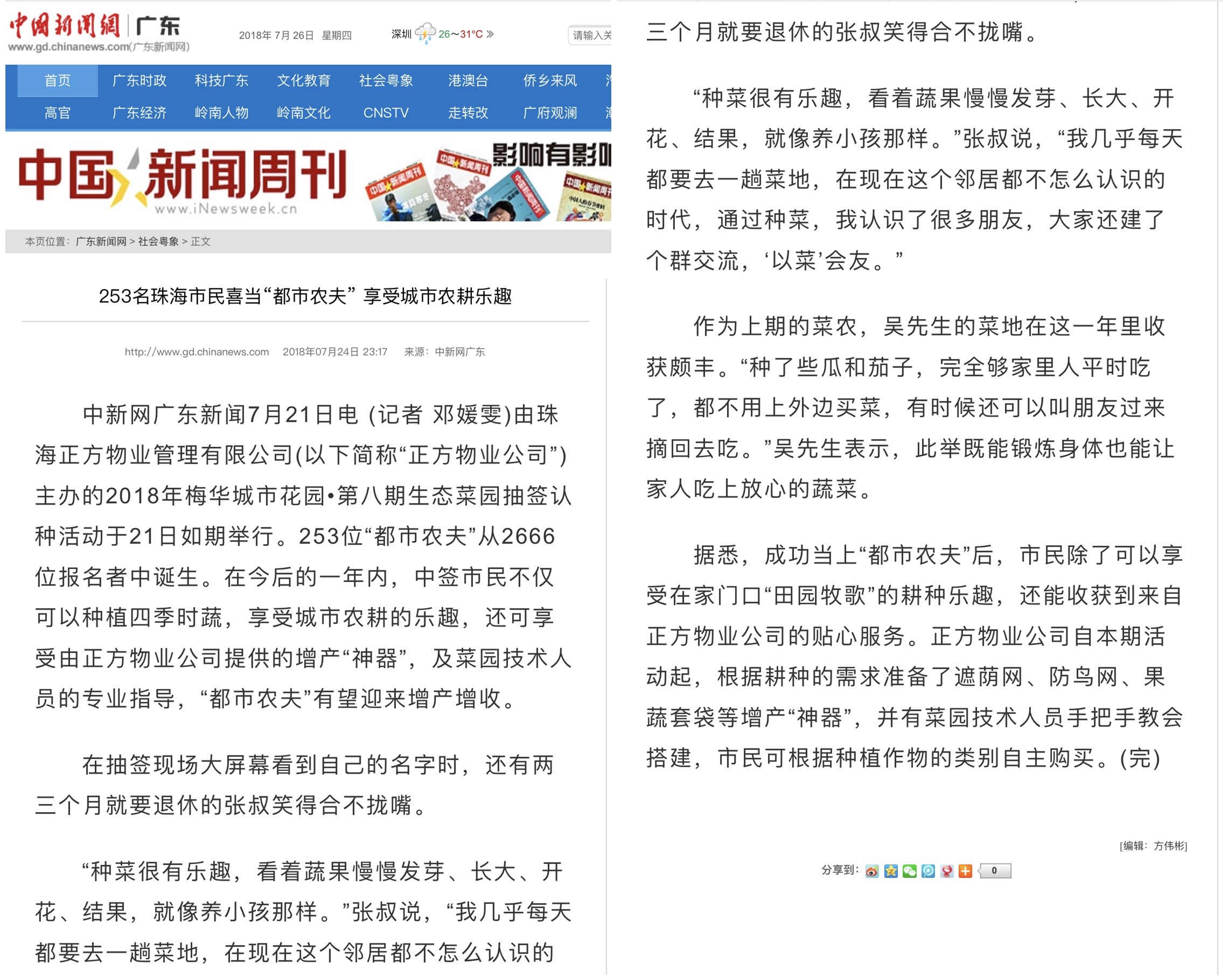 “種菜很有樂趣,看著蔬果慢慢發(fā)芽、長大、開花、結(jié)果,就像養(yǎng)小孩那樣?!睆埵逭f,“我?guī)缀趺刻於家ヒ惶瞬说?,在現(xiàn)在這個(gè)鄰居都不怎么認(rèn)識(shí)的時(shí)代,通過種菜,我認(rèn)識(shí)了很多朋友,大家還建了個(gè)群交流,‘以菜’會(huì)友?!?span>