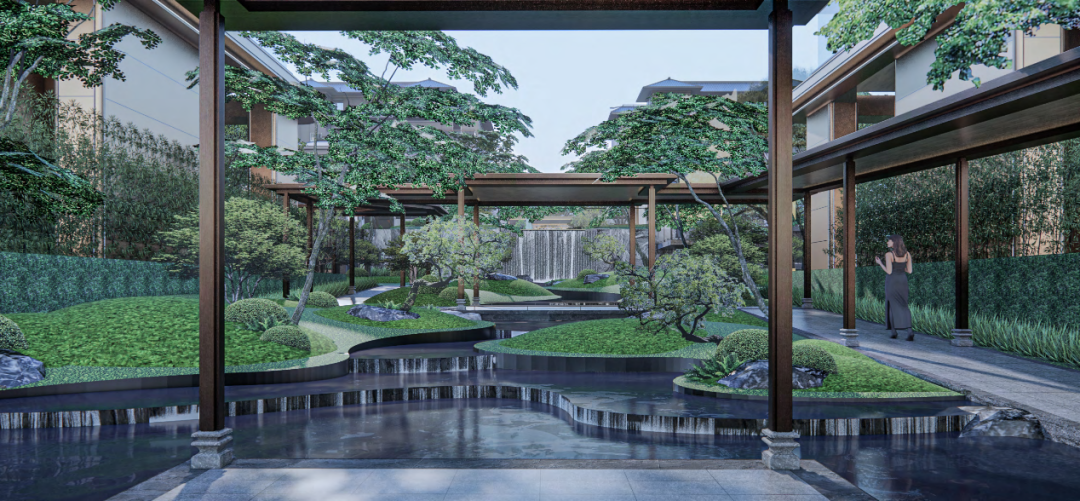 而社區(qū)內(nèi)部,則采用正方首創(chuàng)、珠海唯一的新嶺南風(fēng)格園林,參考吸取嶺南四大名園精華,打造“兩軸三庭,五進(jìn)六園”景觀(guān)布局。