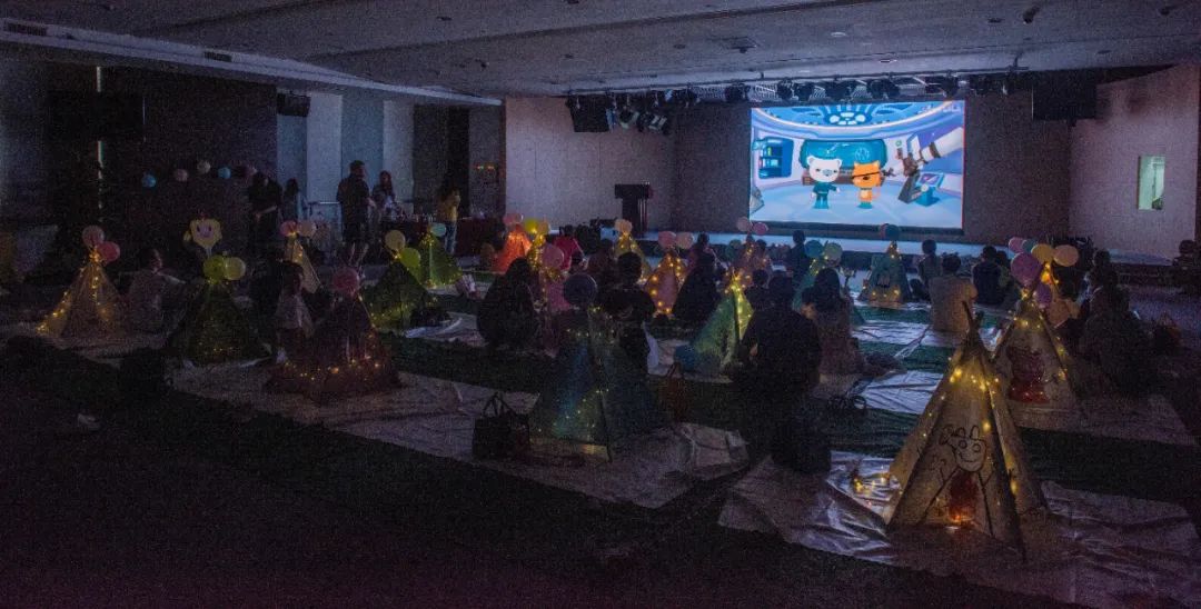 在室內(nèi)帳篷區(qū)域進(jìn)行下午茶,并觀看天文科普視頻也是本次活動的一個亮點(diǎn),讓小朋友們在家長的陪伴下,享受美味“野餐”同時,探秘天文知識、逐夢航天理想,親子共享幸福的閑暇時光。