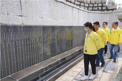 隨后,全體人員整齊肅立在革命烈士碑前,為革命烈士敬獻花圈,祭奠烈士英靈,向烈士墓碑鞠躬默哀,表達對革命烈士的無限敬仰之情。據(jù)了解,寶特控股公司(銀坑蠔場)原職工、烈士劉金水的墓碑修建在陵園之中,唐亮同志到墓碑前祭拜,認真聆聽烈士的英雄事跡。最后,全體人員瞻仰烈士陵園,追憶當年血與火的革命歷史。