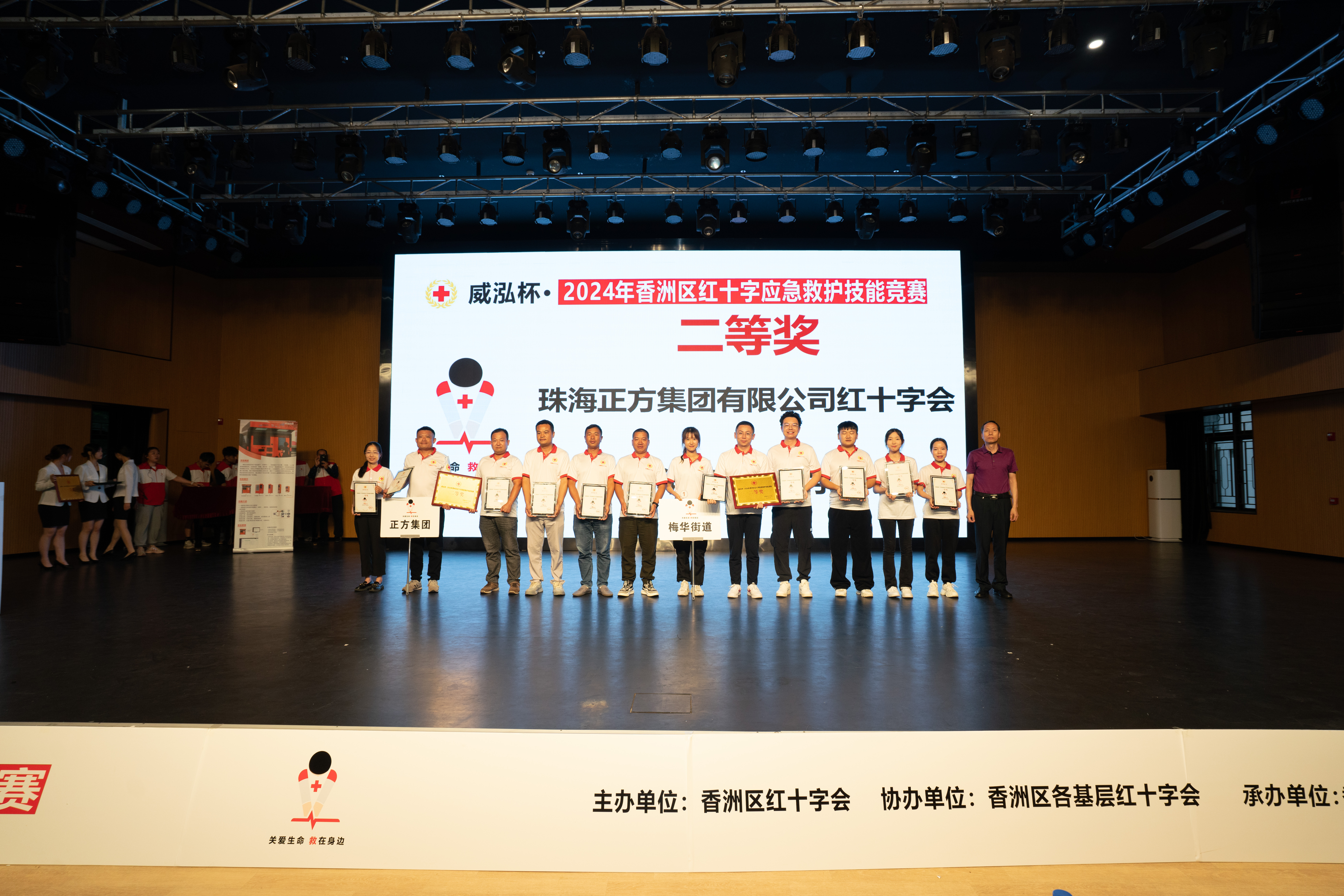 正方集團(tuán)紅十字會的6名參賽選手康鵬波、賴祖軍、葛晶晶、黃旭初、李曰欣、周裕鵬憑借精湛的技術(shù)動作、默契的團(tuán)隊配合,彰顯了“人道、博愛、奉獻(xiàn)”的紅十字精神,贏得了現(xiàn)場觀眾熱烈的掌聲。經(jīng)過緊張激烈的角逐,正方集團(tuán)紅十字會榮獲二等獎。