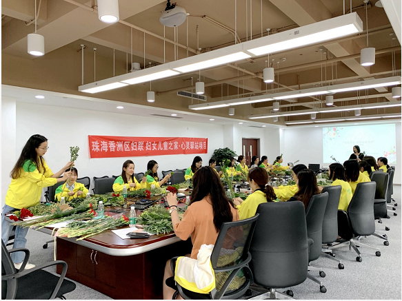 插花藝術(shù)能陶冶人的性情,豐富人的精神生活,增添生活情趣。為充分調(diào)動全體職工的工作熱情和斗志,營造良好的文化氛圍,珠海市香洲正方控股有限公司婦女聯(lián)合會(以下簡稱“香洲正方婦聯(lián)”)攜手珠海市香洲區(qū)婦女聯(lián)合會、婦女兒童之家心靈驛站,于5月28日下午在正方·云創(chuàng)園開展“以花養(yǎng)心·讀懂您的芳華”花藝小課堂。本次活動邀請了花藝技師、亞洲花藝師、香港花會會員余芷琪老師為大家講解花藝知識,感受花藝魅力。