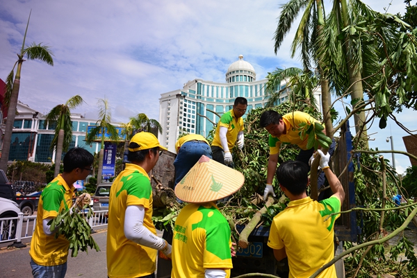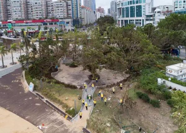 經(jīng)過科學細致的部署,根據(jù)專業(yè)性質具體劃分應急搶修小組分別就樹木切割、垃圾清理、道路清掃、電力維修、后勤物資運輸?shù)裙ぷ?,全體員工分工協(xié)作,對城市客廳、香爐灣、鳳凰灣等情侶路沿線區(qū)域展開深度搶修工作。