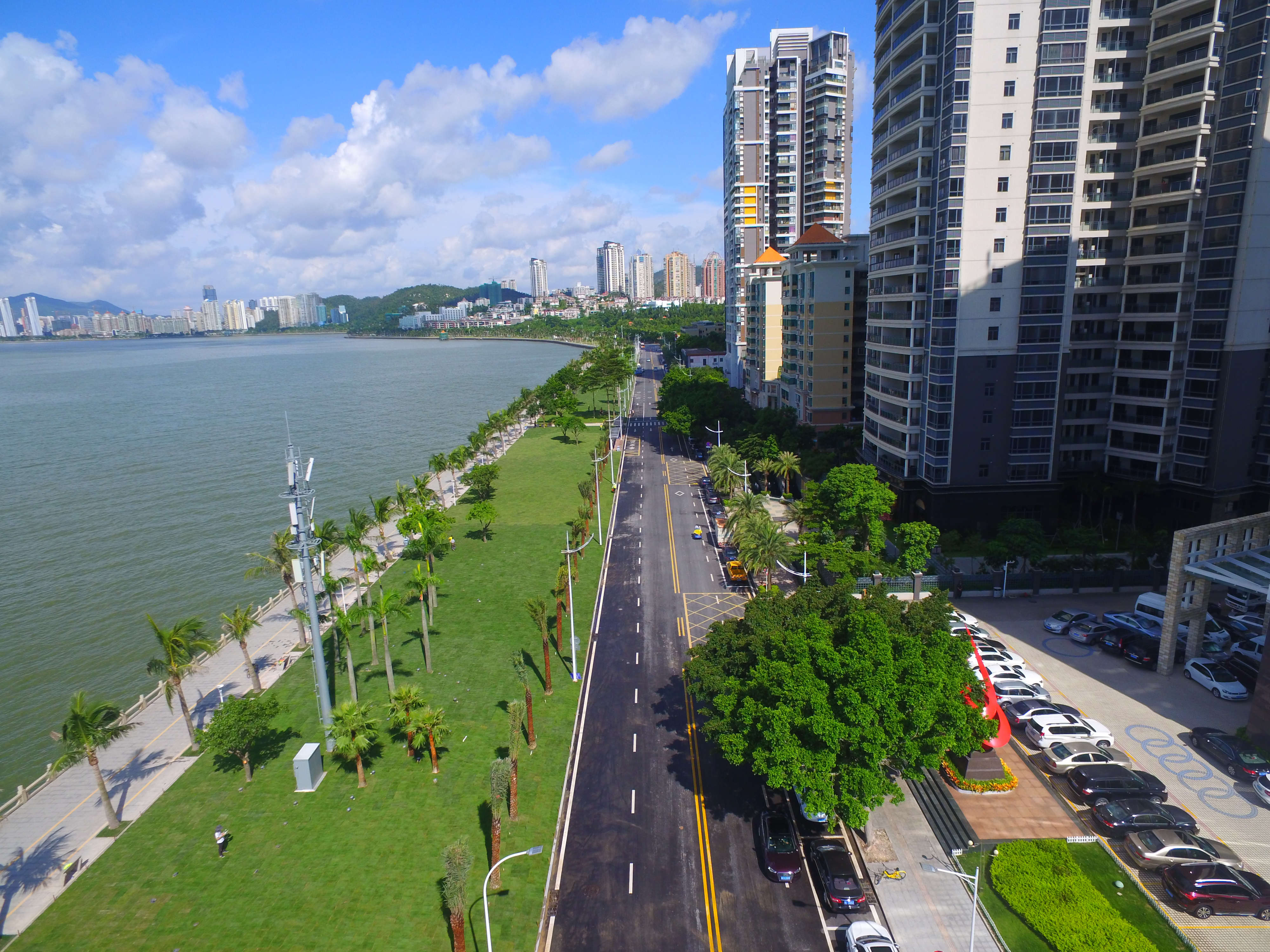 珠海正方市政建設(shè)有限公司總經(jīng)理張有文表示,“此次情侶路升級改造,將原本比較密集的傳統(tǒng)庭院式景觀設(shè)計(jì),改為了更為開闊通透的設(shè)計(jì),將景觀打通,使市民的空間使用率大為提升。改造后的情侶路綠地與海天連為一體,視覺效果更加開闊,也得到了市民與外國游客的認(rèn)可,展現(xiàn)了海濱沿線的優(yōu)美景觀帶。”