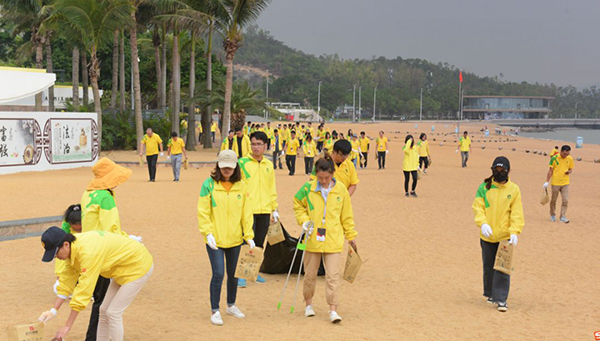△近200名小黃人參加閉海后第一次保潔行動(dòng)