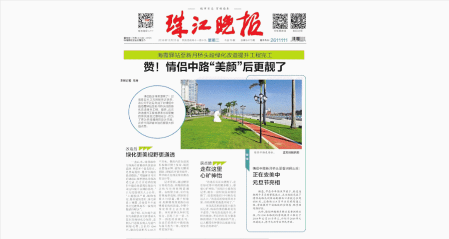 為積極響應(yīng)珠海市府辦對(duì)情侶路景觀整治提升的工作要求,在香洲區(qū)城管局的統(tǒng)籌安排下,城管局各園林所與正方控股通力合作,于今年12月10日完成了對(duì)情侶中路海霞驛站至新月橋段的綠化改造提升工程。此次改造提升工程將原本比較密集的傳統(tǒng)庭院式景觀設(shè)計(jì),改為了更為開(kāi)闊通透的設(shè)計(jì)風(fēng)格。景觀打通后,市民的空間使用率大為提升。改造后的情侶路綠地與海天連為一體,視覺(jué)效果更加開(kāi)闊,與周邊環(huán)境相得益彰,展現(xiàn)了珠海海濱沿線的優(yōu)美景觀帶。