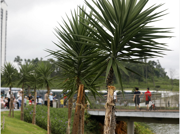 蘇瑞敏說,結(jié)合景觀的需要,近期,香洲正方將近200株大小不一的劍麻、針葵、龍露兜等樹木搬離了原本在前山立交橋底、珠海大道側(cè)分帶、梅華路與迎賓路交界處繁密雜亂的“舊家”,它們成為了香山湖大家庭中的新成員。太湖石搭配這些從主干道路渠化島、立交橋底周邊移植而來的喬灌木,形成了經(jīng)濟(jì)節(jié)約同時也極具特色的園區(qū)景觀。