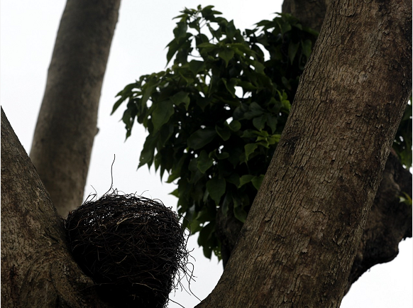 “哇!媽媽快看,樹上有個鳥巢!”采訪過程中,記者突然聽到身邊傳來孩子的聲音。回頭只見一名男童興奮地朝園區(qū)內(nèi)的一棵香樟樹跑了過去。