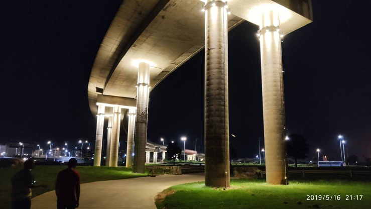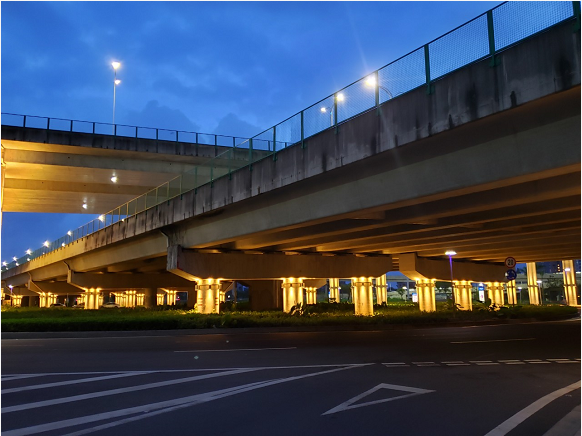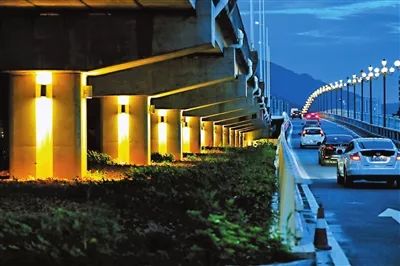 據(jù)珠海市香洲正方控股有限公司總經(jīng)理助理張有文介紹,立交橋燈光亮化工程包括功能性景觀照明和裝飾性景觀照明兩部分;除人行通道區(qū)域外,其他區(qū)域都屬于景觀照明的范圍。香洲正方通過在橋墩側(cè)面設(shè)置暖色調(diào)壁燈,將橋身以及周圍環(huán)境點(diǎn)亮,不僅實(shí)現(xiàn)了沿線夜景的可觀性,點(diǎn)綴了珠海夜景,也方便了車輛駕以及行人通行,橋底的安全性也大為提高。