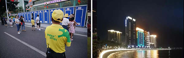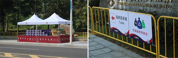 活動(dòng)當(dāng)天,“小黃人”們對(duì)將軍山公園五個(gè)入口進(jìn)行封閉,做好火種管理、值班值守以及山地、林地的巡查安全管理工作;將情侶南路所有的手繪垃圾桶全部拆除移走,設(shè)置30個(gè)600L的大型垃圾桶,調(diào)配2臺(tái)車(chē)輛式移動(dòng)洗手間及100個(gè)立式移動(dòng)洗手間停放到指定位置,3個(gè)驛站配套洗手間正常開(kāi)放。當(dāng)?shù)弥^(guān)賞C區(qū)臨時(shí)調(diào)整為兩個(gè)區(qū)域(C1和C2)后,公司積極應(yīng)對(duì),通過(guò)兩次調(diào)整,將放置在D區(qū)的2臺(tái)車(chē)輛式移動(dòng)洗手間順利調(diào)配補(bǔ)位到C2區(qū)域,及時(shí)解決問(wèn)題。此外,香洲正方還設(shè)置了7個(gè)便民售水服務(wù)點(diǎn)并配備應(yīng)急藥箱。