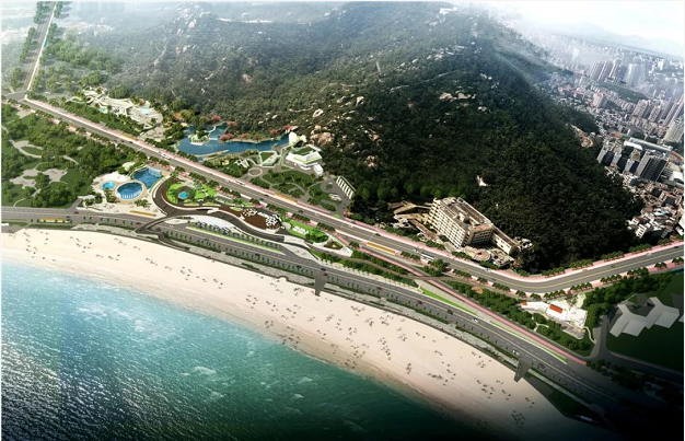 整個(gè)項(xiàng)目建成后,將形成集“兩路三片四臺”于一體的綜合性開放式城市公園。兩路指海濱路、情侶路;三片為山湖相映的西片區(qū)、觀海休閑的核心區(qū)、親?;拥臇|片區(qū);四臺指山頂浪漫之臺、山腳休閑之臺、休閑觀海之臺、沙灘親水之臺。