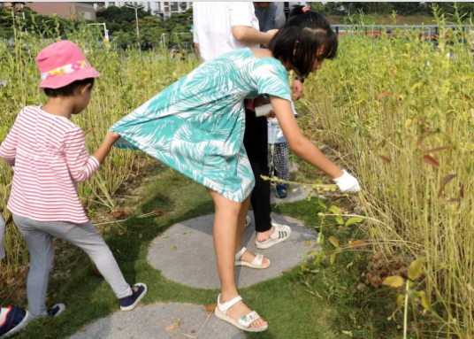 26日一早,時針還未到9點,香山湖公園里就出現(xiàn)了小朋友們歡快的身影。湖里的魚兒,湖面的天鵝、青頭鴨,湖邊的花朵……孩子們沉浸在美妙的大自然中。近300平方米的芝麻田里,兩個多月前種下的芝麻已經(jīng)長高成熟,在風中搖曳出輕快地舞姿,吸引著孩子們好奇的目光。