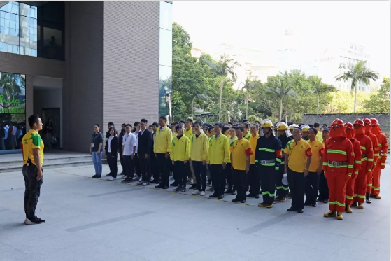 消防演練總指揮、珠海市香洲正方控股有限公司總經(jīng)理助理、正方公共運(yùn)營(yíng)董事長(zhǎng)黃華寧立即啟動(dòng)消防應(yīng)急預(yù)案,疏散組按照方案組織大樓人員有序疏散,約600余名辦公人員迅速有序地從消防通道撤離至大樓一層外集合。