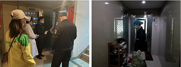 他們到隔離居民住處了解詳細(xì)的實(shí)時(shí)動(dòng)態(tài),耐心做好人員引導(dǎo)和心理疏導(dǎo)工作,協(xié)調(diào)做好各類物資保障,幫助購買各類生活用品、配送餐食飲品、傾倒垃圾。