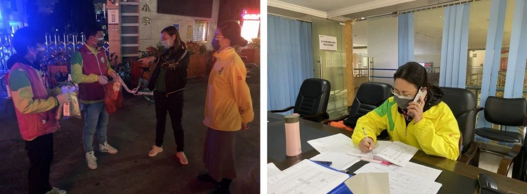 協(xié)助做好居家隔離工作,發(fā)現(xiàn)居民有發(fā)熱、咳嗽等癥狀及時(shí)上報(bào);協(xié)助社區(qū)在公共區(qū)域開展體溫測量、隔離登記、統(tǒng)計(jì)排查、秩序維護(hù)、困難群眾幫扶等防控工作。