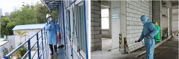 項(xiàng)目工地實(shí)行全封閉管理,在施工現(xiàn)場入口設(shè)置體溫檢測點(diǎn),配備隔離觀察房,儲(chǔ)備口罩、消毒液和測溫槍等防疫物資,每天對(duì)辦公區(qū)、生活區(qū)、食堂、廁所進(jìn)行兩次全面消毒。