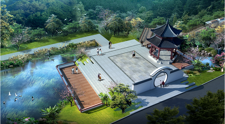 香洲正方利用地勢依水而建環(huán)湖碧水親水棧道,打造古色古香的水軒、跌水、景亭等。以“最小干預(yù)最大促進”原則,將對生態(tài)的干擾降到最低,并最大限度維護場地原有生態(tài)格局,促進資源的高效利用與循環(huán)再生。
