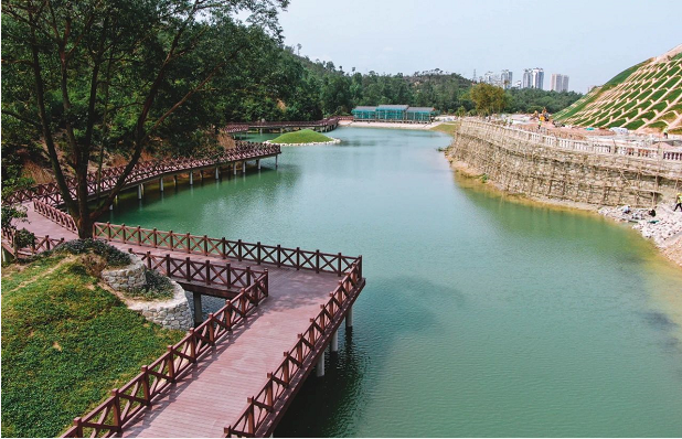 “這里的每一處規(guī)劃設(shè)計,都可謂‘用心良苦’”,香洲區(qū)委常委、副區(qū)長彭甦介紹,“沒砍一棵樹、也沒買一棵樹”,秉承“可達、可游、可憩”和“安全、生態(tài)、節(jié)約”的理念打造香山湖二期。