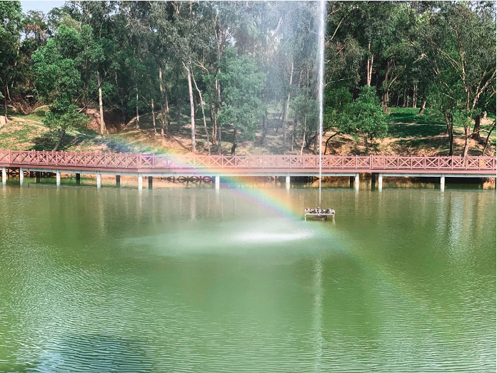 在水一方,漫步在古色古香的棧道上,欣賞湖邊的點點翠綠,聆聽園中的聲聲鳥鳴,感受來自市中心的原生態(tài)。
