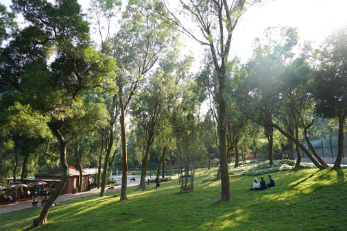 通過疏通公園原有的下層灌木,鋪設(shè)開敞的草坪,打造通透的林下視線。改造后,踩著柔韌的草坪,可以從童心路入口一路奔向梅華路入口,大大增加了活動(dòng)空間和親近自然的機(jī)會(huì)。