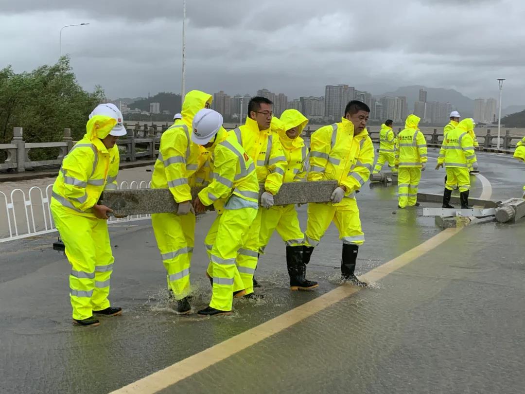 路堵了,橋封了,暴風(fēng)驟雨瘋狂肆虐。整個城市在夜色中仿佛靜止,然而,當(dāng)晨光微熹,卻有1000多名小黃人迎著未散的風(fēng)雨,從徹夜堅(jiān)守的崗位上沖向與臺風(fēng)的斗爭之中,在情侶南路,小黃人們積極清理路面上的海水,收拾草坪上的樹葉、垃圾...