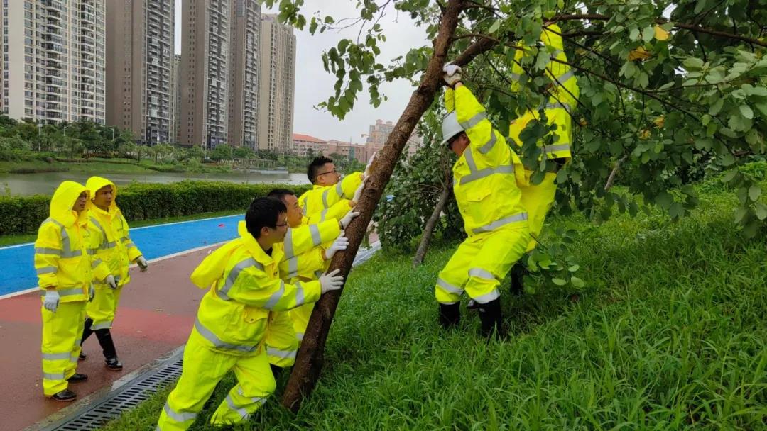 140個社區(qū)公園、150所公廁、三大沙灘、球場等全部關(guān)閉,張貼懸掛“三防”公告,撤離人員,加固園區(qū)門、窗、游船等;商業(yè)街門店關(guān)閉,停車場斷電立桿;各在建項(xiàng)目停工停電,做好現(xiàn)場防護(hù)措施,對現(xiàn)場設(shè)施及集裝箱進(jìn)行加固,配備防風(fēng)防汛物資及應(yīng)急隊(duì)伍;疏枝及修剪樹木6000余棵,加固樹木12000余棵,組織排查公園薄弱點(diǎn)140個。