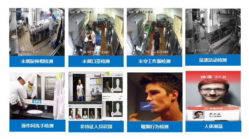 24小時(shí)監(jiān)控全覆蓋,通過紅外高清攝像頭的“工作帽識別”“口罩識別”“夜間老鼠識別”“吸煙/使用手機(jī)檢測”,實(shí)時(shí)抓拍生產(chǎn)人員不規(guī)范操作行為,準(zhǔn)確及時(shí)地對違章行為進(jìn)行處置。