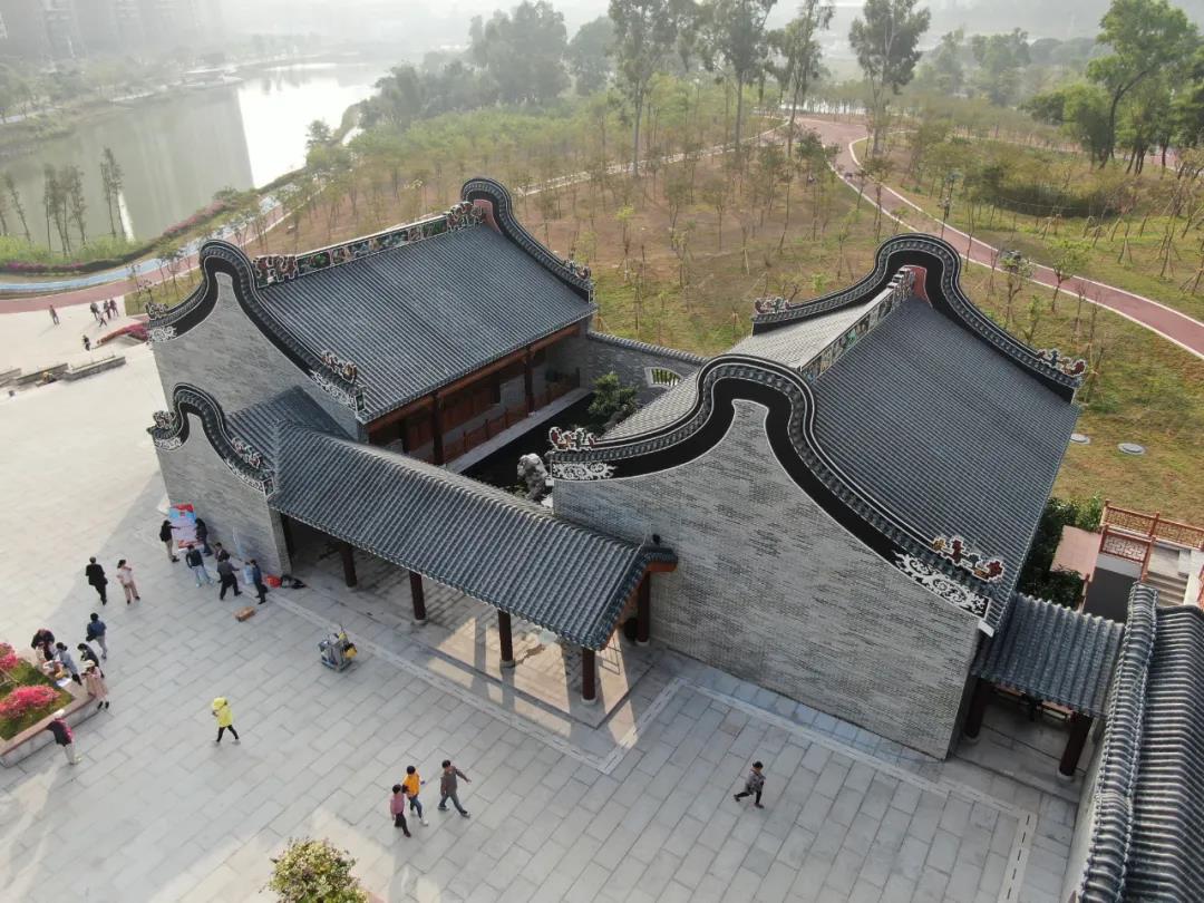 香山湖公園三期位于鳳凰山西南角,在整體的建筑設計上遵循香山湖公園二期“雖由人作,宛自天成”的設計理念,延續(xù)二期典型的清代廣府建筑風格。