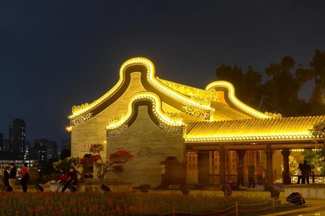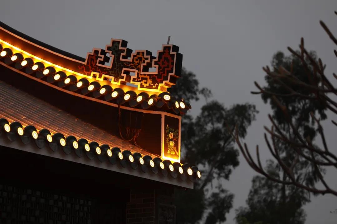利用燈具的光、色、影的手段,重塑建筑在夜間更加動人,俏麗、雄偉壯觀的形象讓市民在夜間和白天感受傳統(tǒng)嶺南園林不一樣的意境和神韻。
