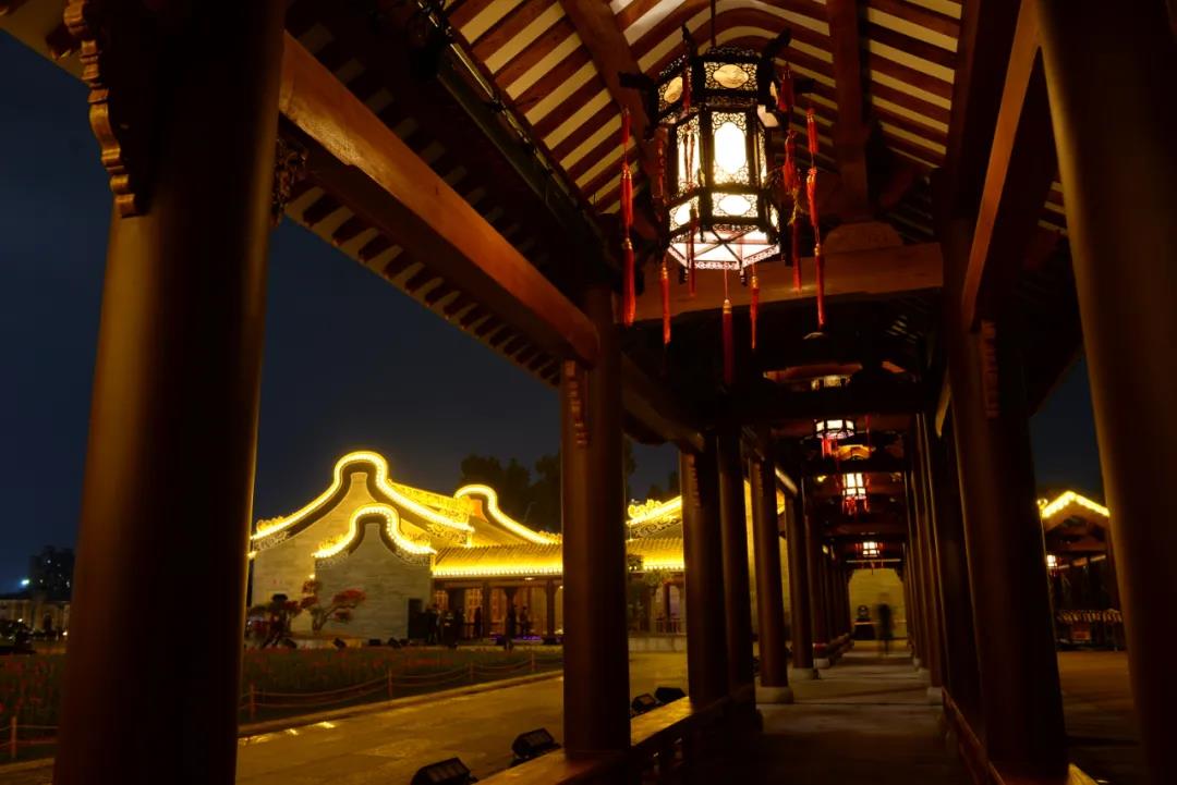 連廊內,20盞精工巧做的宮廷燈(俗稱燈籠燈)升華了經典清代廣府建筑的“雅”的意蘊,體現(xiàn)了清雅含蓄、端莊豐華的東方精神。夜間賞景,在暖色調的燈光氛圍營造下,充分體現(xiàn)出整組建筑物的中國傳統(tǒng)美學精神。