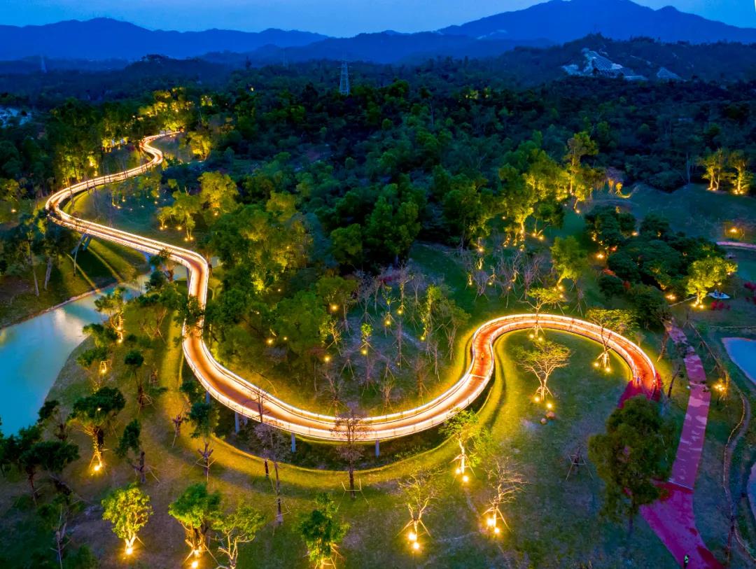 “云棧道”采用1200米暗藏燈帶照明,與棧道旁樹林中用深埋隱藏方式安裝的80余盞樹燈、鳥巢燈相融合,達到見光不見燈的效果。