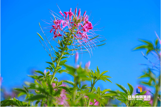 情侶南路全球通大廈對出路段,醉蝶花同樣開得旺盛,遠處的港珠澳大橋,眼前的鮮花,令人忍不住拿出相機,留下最美一刻。