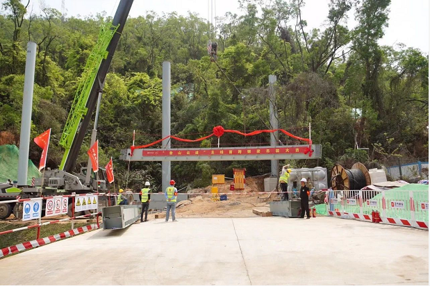 因香山云道作業(yè)處山林陡峭,整條云道共需安裝630座鋼梁。主線首跨鋼梁吊裝是按照先導(dǎo)試點的原則,實行首件工程制度——以首件工程樣板示范,引領(lǐng)后續(xù)各標(biāo)段同類工程的標(biāo)準(zhǔn)化施工。首跨鋼梁吊裝完成后,陸續(xù)吊裝在山林中的鋼梁將成為撐起香山云道的脊梁。