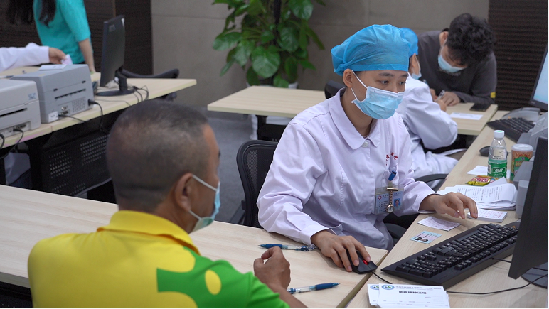 醫(yī)護人員嚴(yán)格按照操作規(guī)程,在登記區(qū)認真核對接種對象身份,引導(dǎo)接種對象有序進行等候。