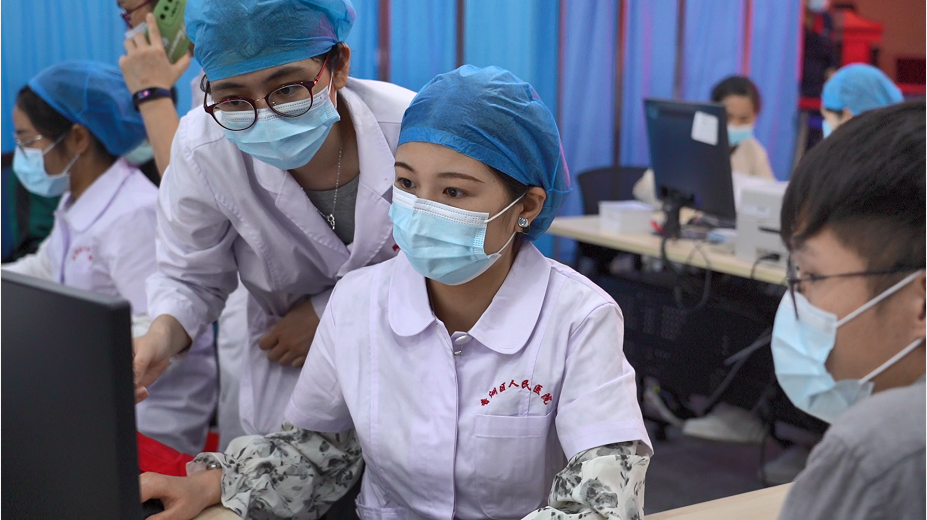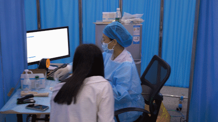 相同的動作重復(fù)近百次,醫(yī)護人員仍舊保持耐心,安撫情緒、解答疑惑,接種過程一氣呵成。