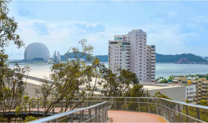 觀景平臺(tái)上180°眺望情侶路標(biāo)志海景,傾聽(tīng)大浪灣和香爐灣,以海浪海風(fēng)訴說(shuō)著的香山故事。珠海博物館、珠海歌劇院、港珠澳大橋,遠(yuǎn)近疊影,恍如被收在畫框之中。